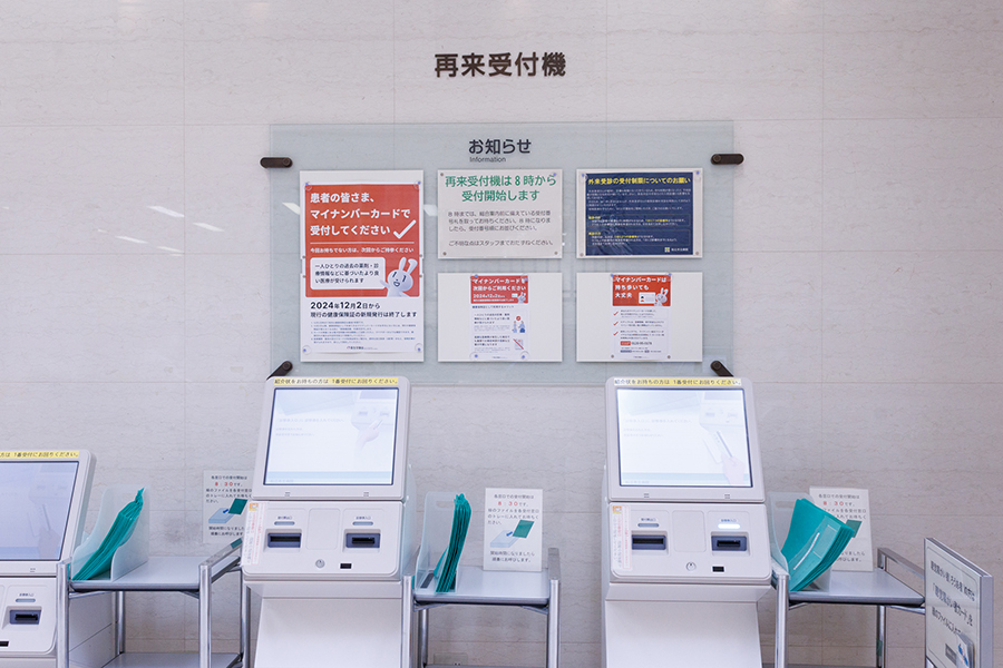 - 6番:外来受付、泌尿器科、眼科、乳腺・内分泌外科、耳鼻いんこう科、産婦人科、整形外科、形成外科、心臓血管外科、呼吸器外科