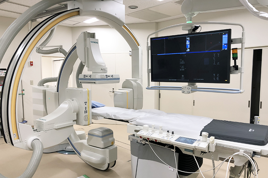 脳血管内手術(脳動脈瘤コイリング、血栓回収術)、頚動脈ステント留置術、肝細胞癌への血管内治療(塞栓術、薬剤投与)など様々な検査・治療を行っています。