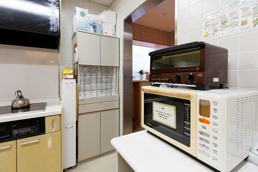 ファミリーキッチンには冷蔵庫・IHクッキングヒーター・炊飯器・電子レンジ・食器・調理器具など完備しています。どなたでもご自由にお使いください。