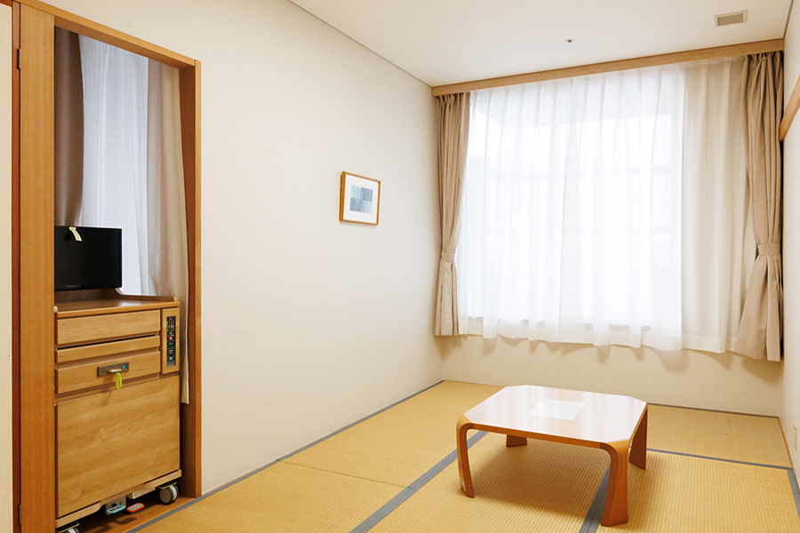 お部屋の設備として、電動ベッド・テレビ(無料)・冷蔵庫(無料)・電話(有料)・クローゼット・洗面台・シャワー・座敷・電動カーテンがあります。(1日8,800円)