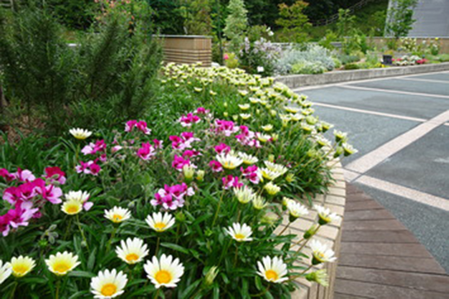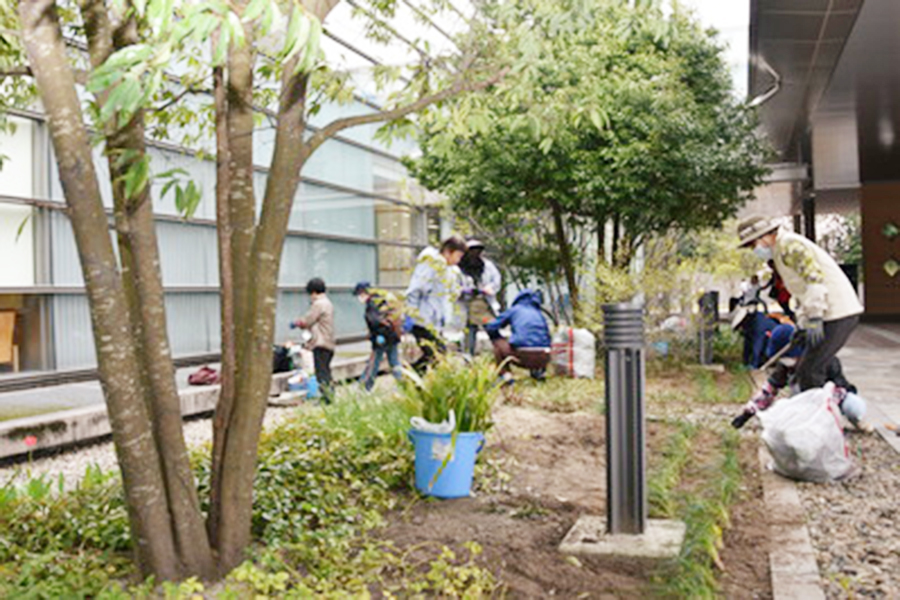 当院が立地する田和山は豊かな自然に囲まれており、敷地内にも色とりどりの花や緑がたくさんあります。そうした「癒しの療養環境」の保全のため、日々除草や花木の手入れなどを行っていただいています。