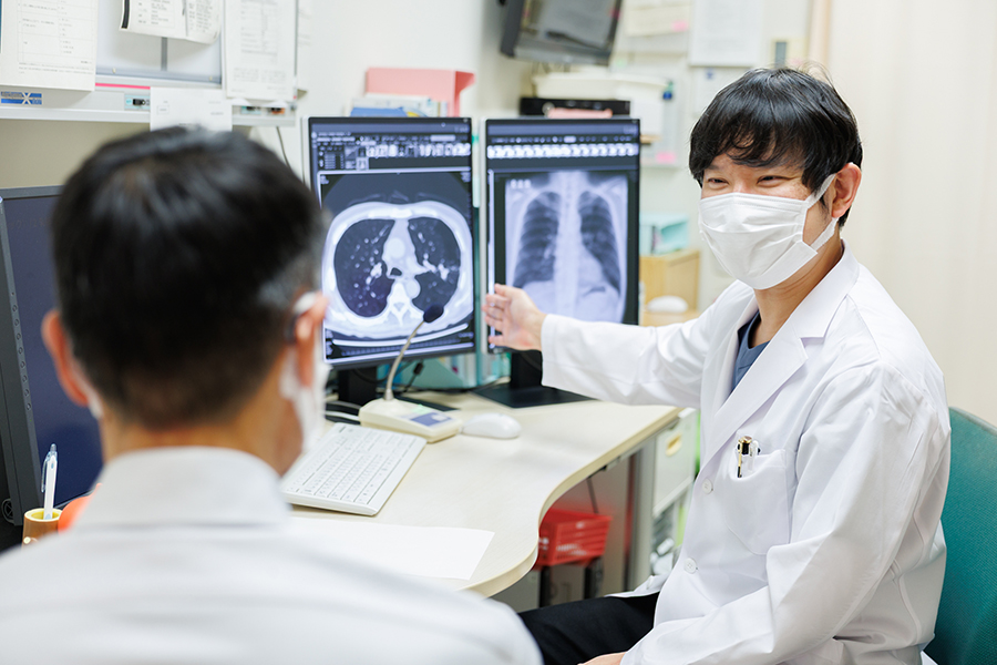 当科では肺がんを主とした胸部悪性腫瘍から気胸や膿胸などの良性疾患まで、呼吸器系に関するさまざまな疾患を専門に扱っています。