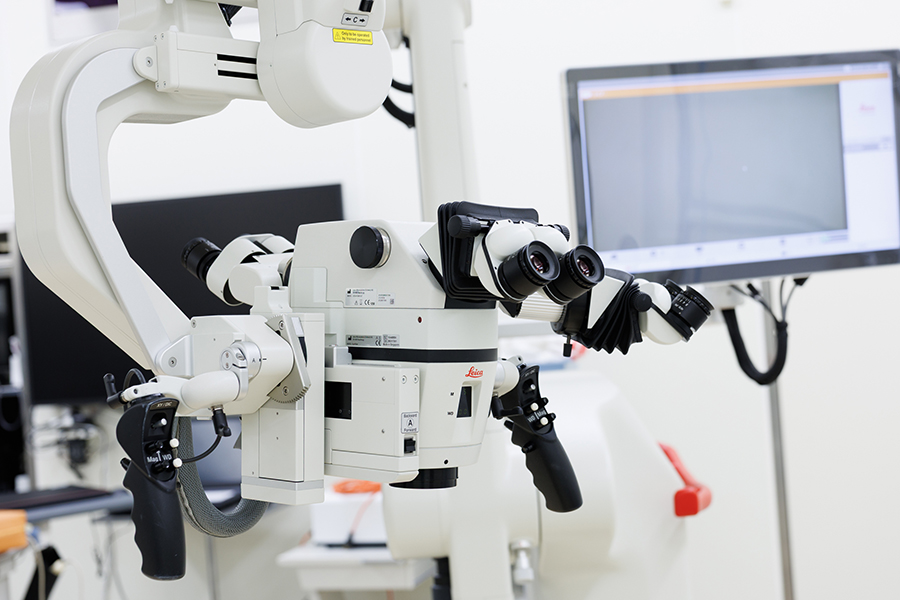 脳神経外科では、患者に寄り添い、生活の質を保ちながら治療を行うために、ナビゲーションシステムと連携した最新のライカ社製手術用顕微鏡を導入することにより、より安全な手術環境を構築しました。また、優秀な臨床検査技師の協力および最新の機器により、あらゆる術中モニタリングを実現することで、開頭手術における合併症を極力低減する努力を行っています。これは特に頭蓋底腫瘍の手術に威力を発揮しています。