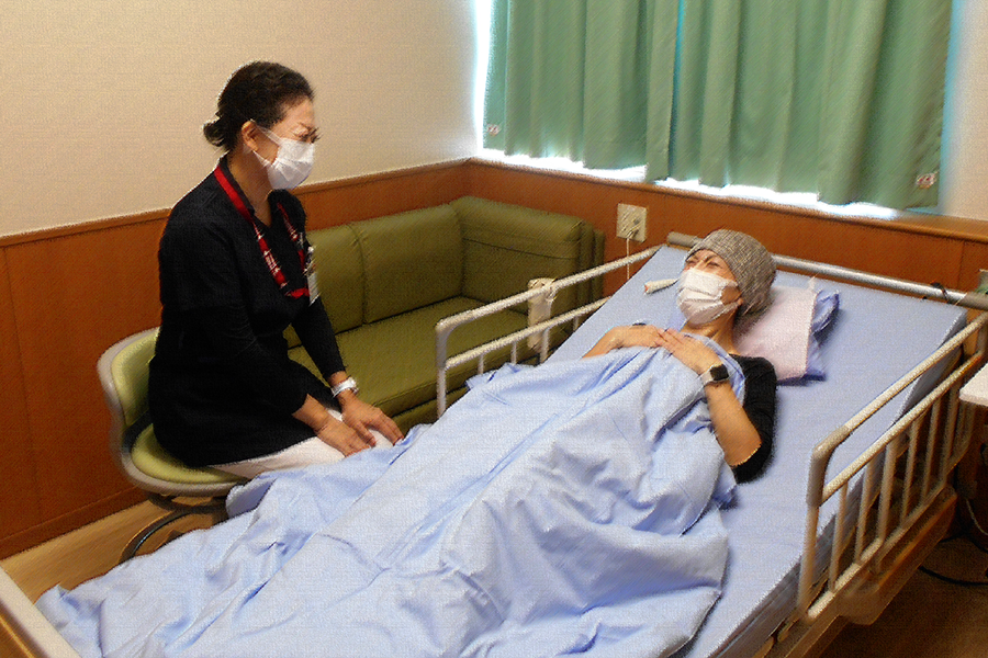 患者さんとご家族が抱える様々な苦痛の緩和を図り、希望や思いに寄り添いながら看護が提供できるように心がけています。また、希望する療養場所で自分らしく過ごせるように支援します。