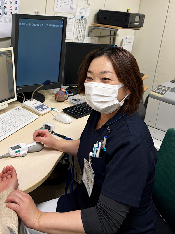 循環器疾患の急性期のケアを行うと共に、退院後の生活を見据えて、患者さんが心不全症状に早期に気づき悪化を防ぐことを目標に心不全手帳を活用して様々な指導等を行っています。また、院内の緩和ケアチームとともに心不全の緩和ケアにも取り組んでいます。