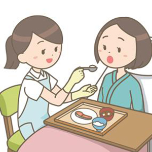 摂食嚥下障害の原因は、病気だけではなく、加齢による影響もあります。誤嚥・窒息を予防し、早期に安全に食べられるように、院内の摂食嚥下支援チームに所属し、多職種(医師・管理栄養士・言語聴覚士)で入院中だけでなく退院後も継続できる関わりについて、その方に合った安全な食支援を検討しています。