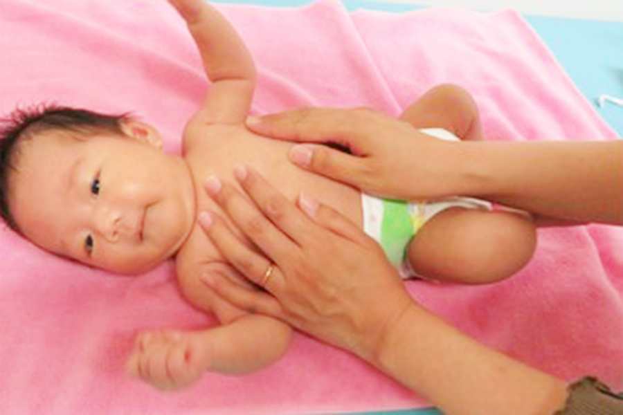 - ベビーマッサージの方法、実践