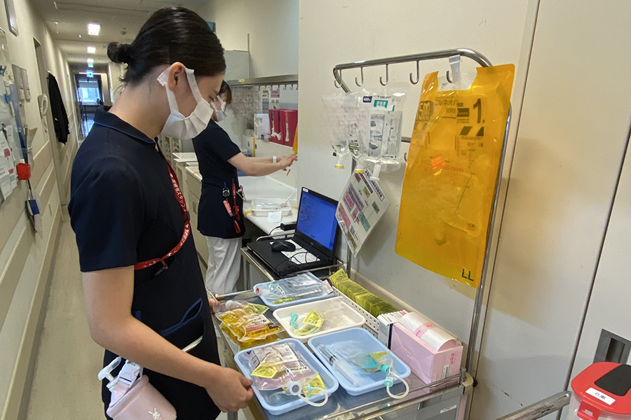 点滴交換の準備